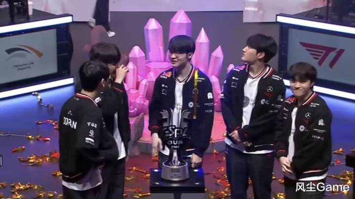 LCK赛区KesPa杯,最终冠军已经诞生了,T1在决赛交手HLE时,以3:2的比分赢下比赛,成功捧起队史首座K杯奖杯,这场BO5的剧情,也是跌宕起伏,T1前两局都身处红色方,但很轻松的就拿到了赛点,大家都以为要3:0结束的时候,T1开始搞节目效果了,连送两分把比赛送到决胜局。